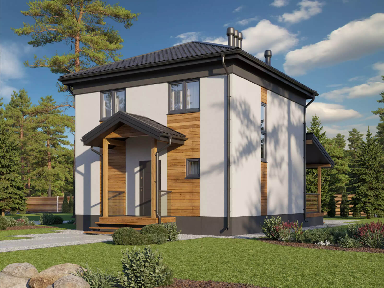 Крышу мы выполняем из различных материалов, применяя в том числе СИП панели. В качестве кровельного материала мы используем: металлочерепицу и профиль, битумную и керамическую черепицу, фальцевую кровлю собственного производства. Также производим кровельные-фальцевые сэндвич панели.