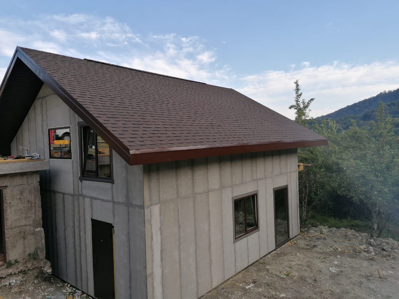 Кровля может быть построена из бруса 150х50мм или SIP панелей. В качестве кровельного материала можно использовать: металлочерепицу, битумную и керамическую черепицу. Также производим кровельные шовные сэндвич-панели.