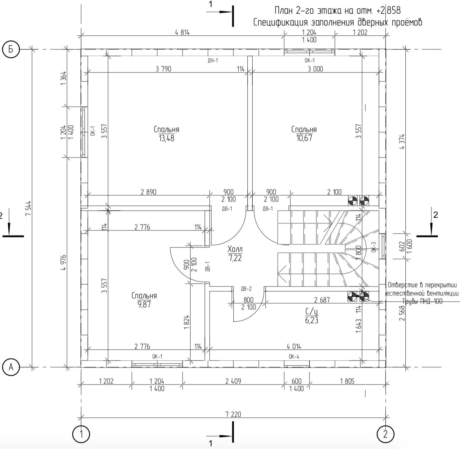 Площадь второго этажа: 54,46 м2