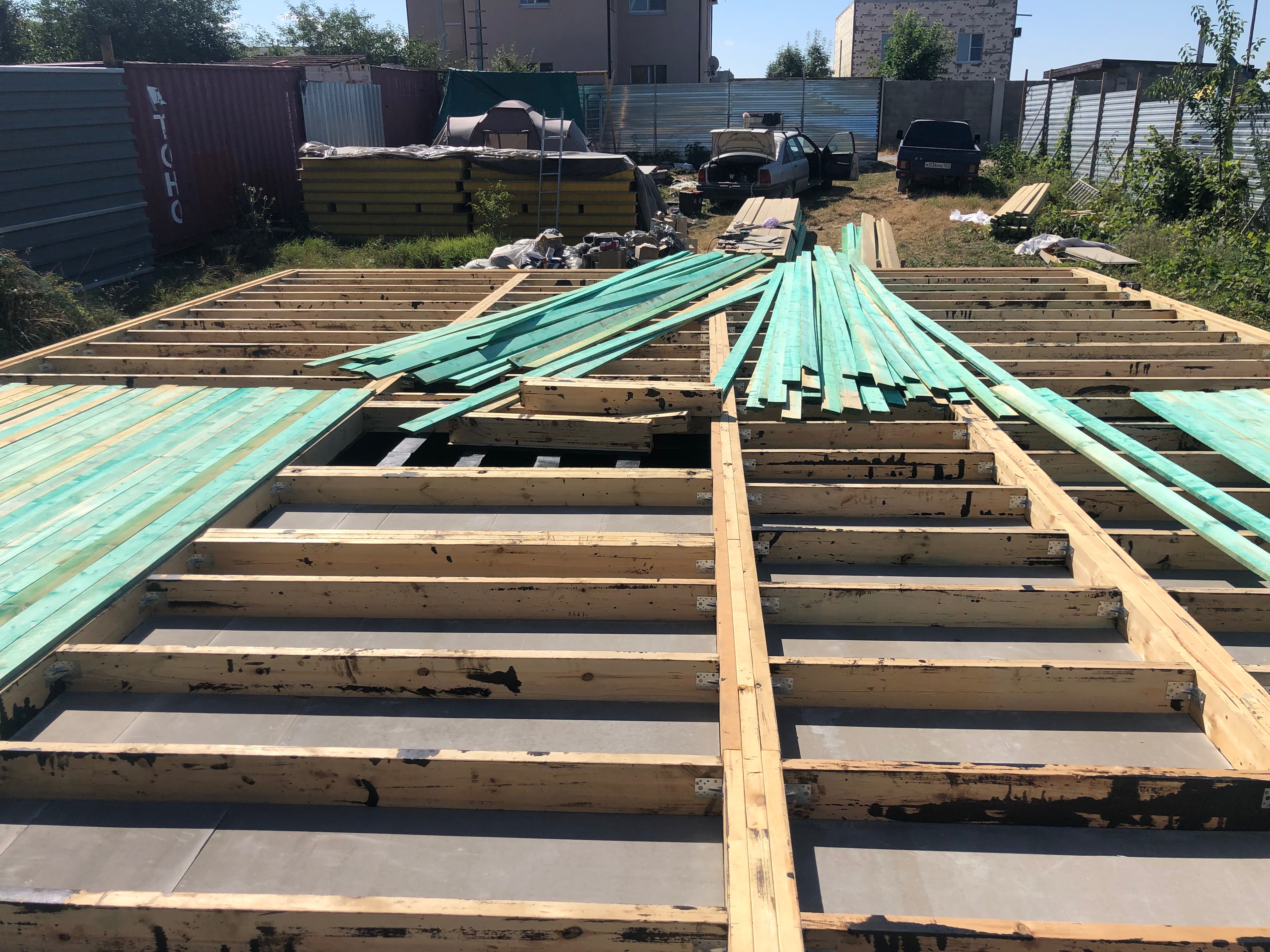 Ростверк изготовлен из калиброванного клееного бруса и защищен снаружи цементно-стружечной плитой