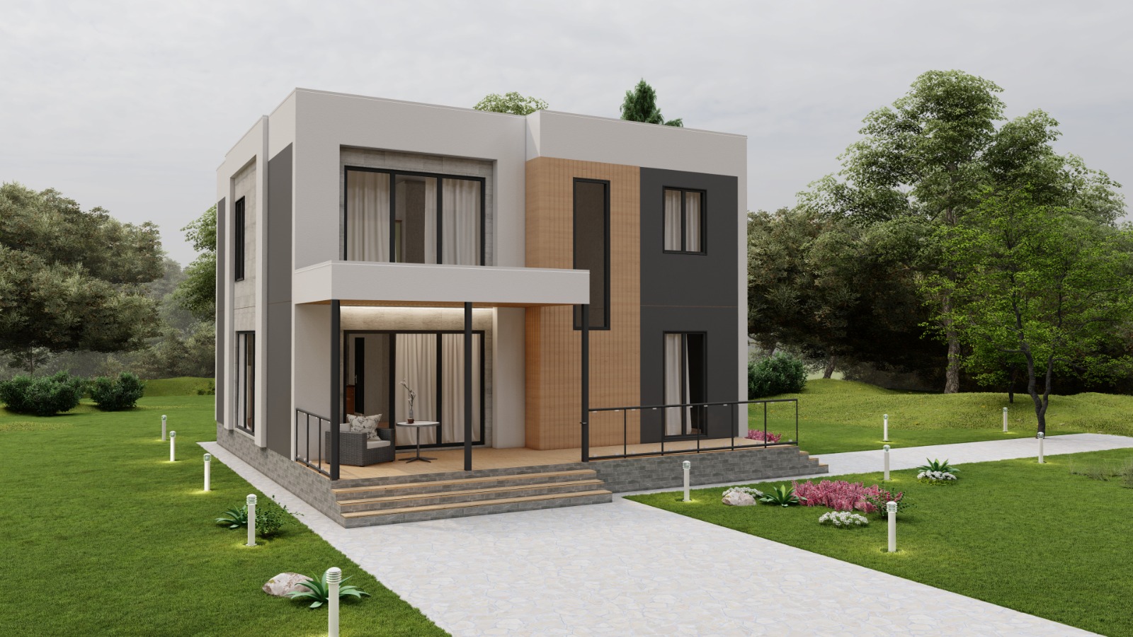 — материал готов для монтажа стен и укомплектован по проекту. В данном случае дом полностью готов к сборке стен, перегородок, а также каркаса межэтажного перекрытия.