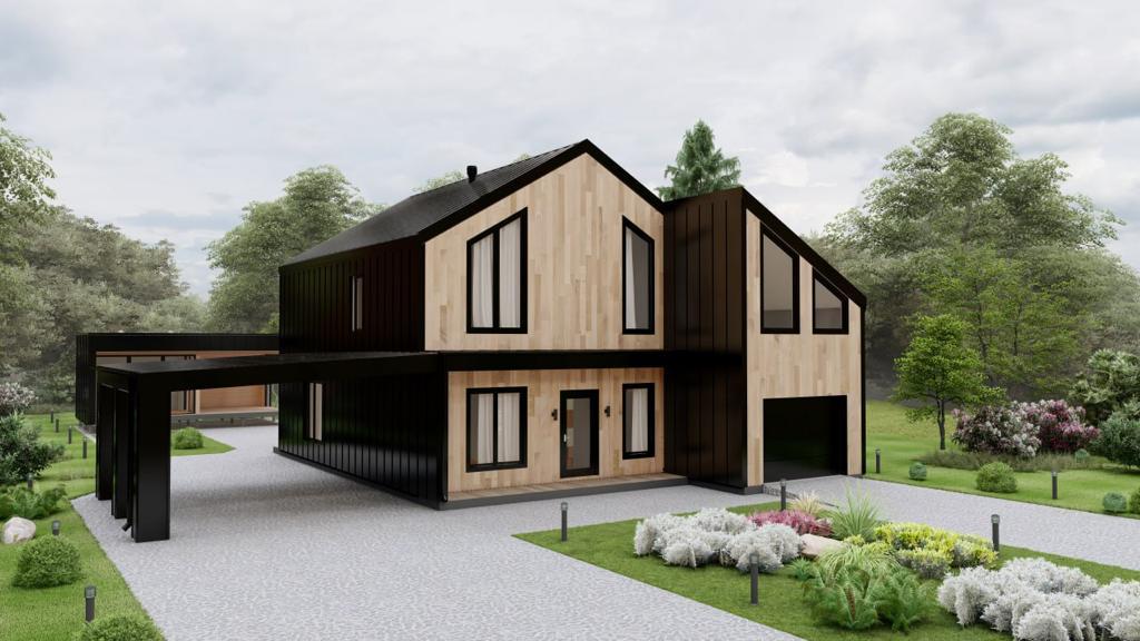 — материал готов для монтажа стен и укомплектован по проекту. В данном случае дом полностью готов к сборке стен, перегородок, а также каркаса межэтажного перекрытия.