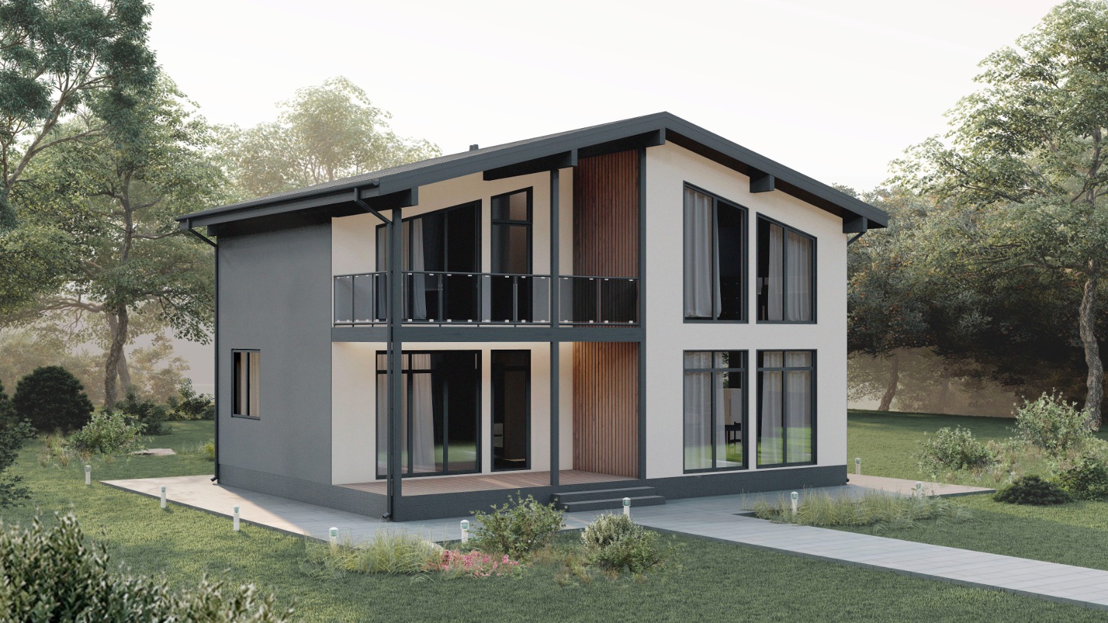 — материал готов для монтажа стен и укомплектован по проекту. В данном случае дом полностью готов к сборке стен, перегородок, а также каркаса межэтажного перекрытия.
