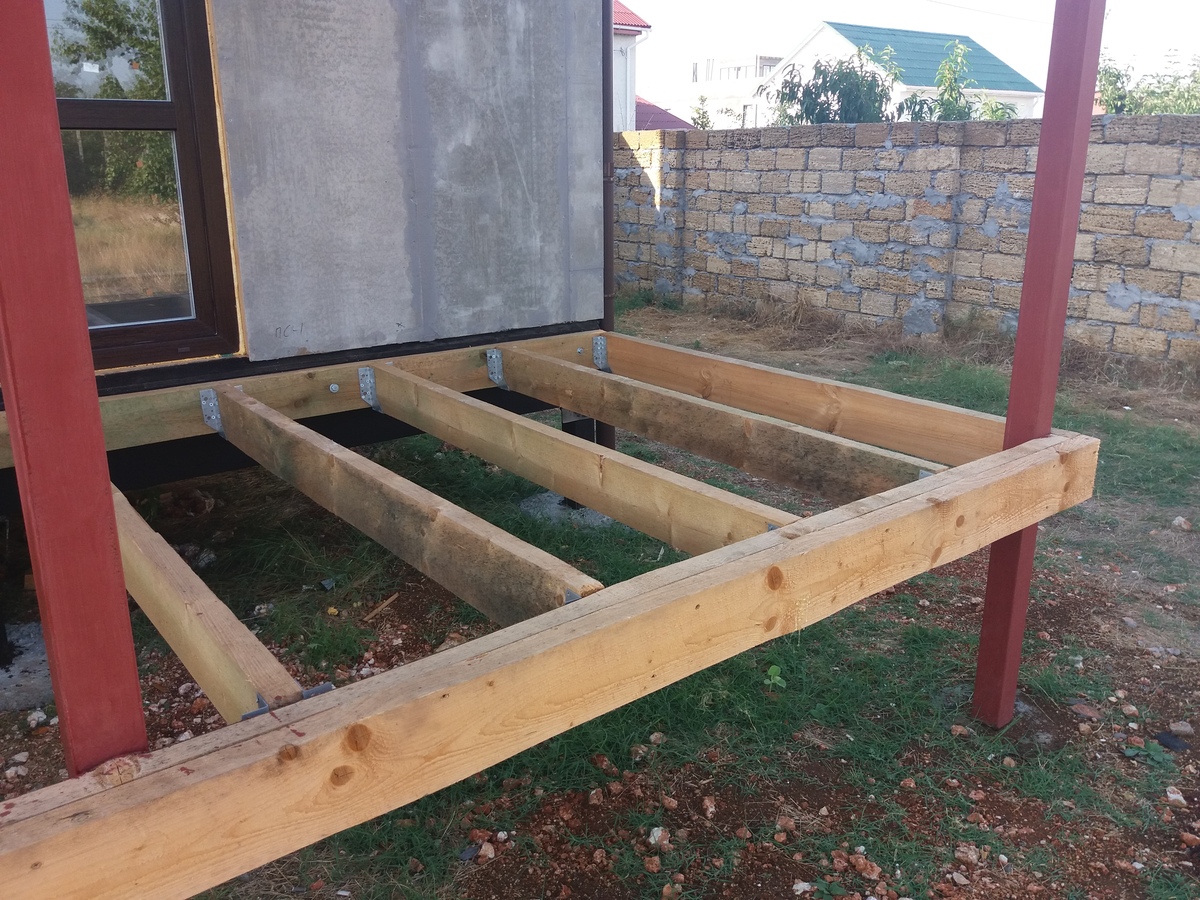 Ростверк изготовлен из калиброванного клееного бруса и защищен снаружи цементно-стружечной плитой