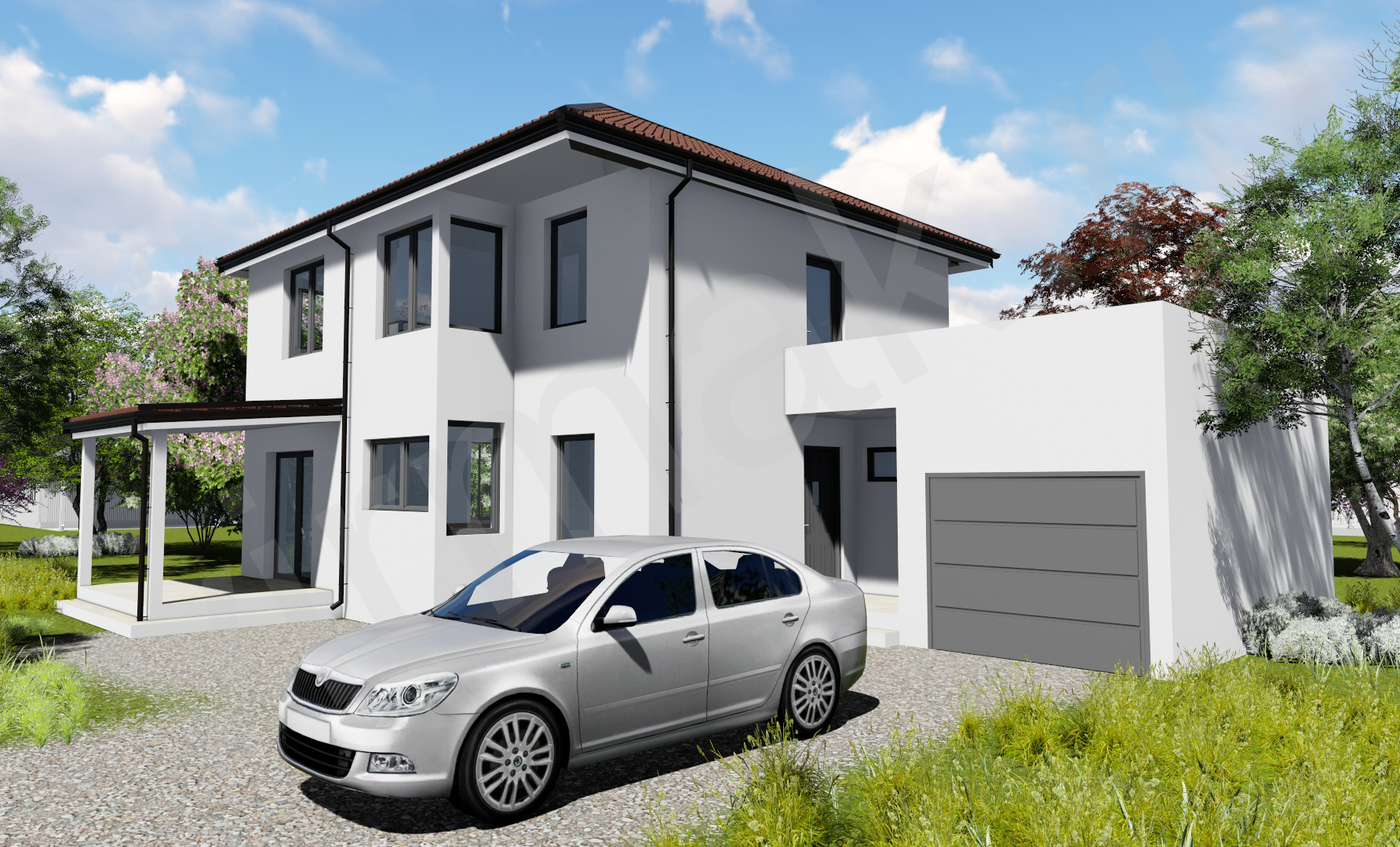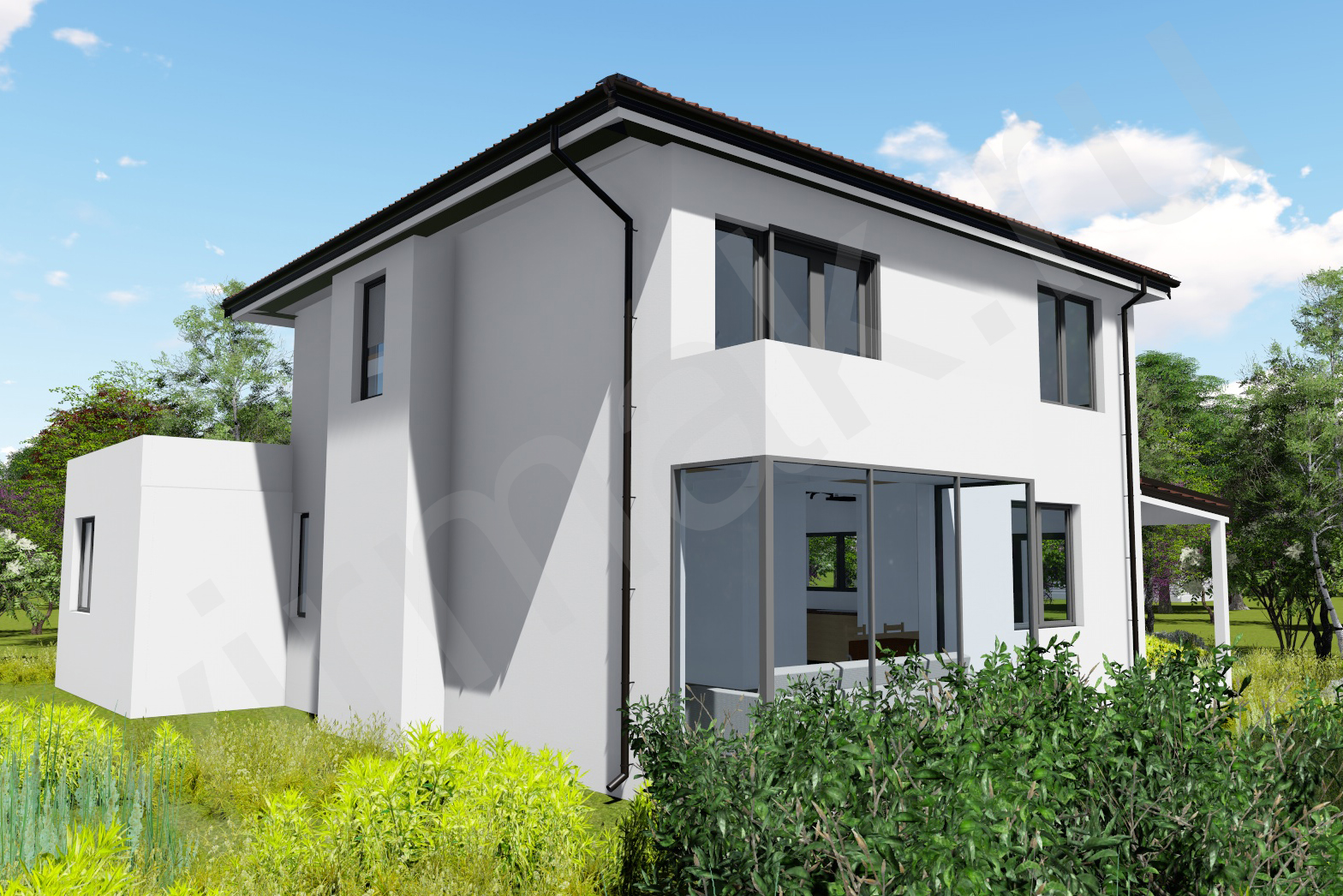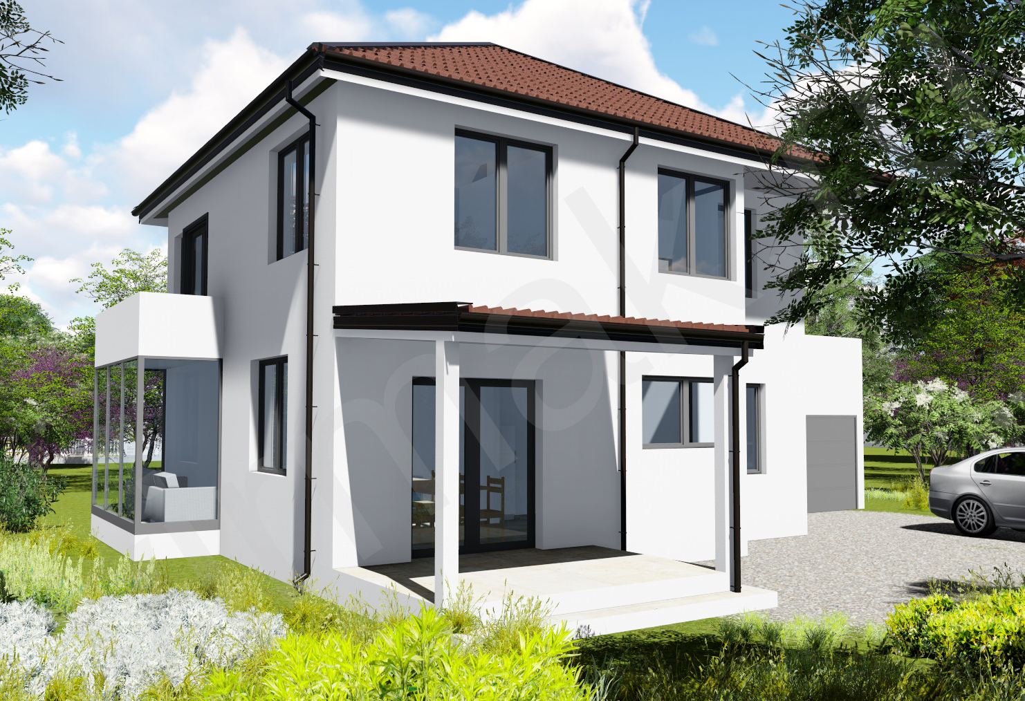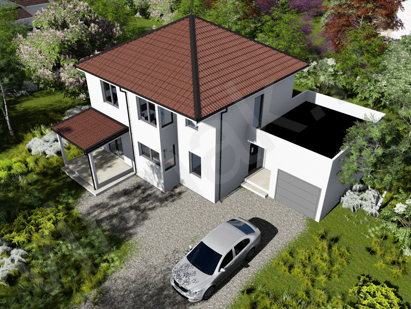 • Плоская или скатная утепленная кровля (пароизоляционная пленка, утеплитель вата на основе стекловолокна или базальта, гидро-ветрозащитная мембрана) с покрытием из металлочерепицы, полимерной мембраны или гибкой черепицы. (цена отличается от выбранного типа) (Ширина карнизного свеса от 30 см. Водосточная система в стоимость не входит