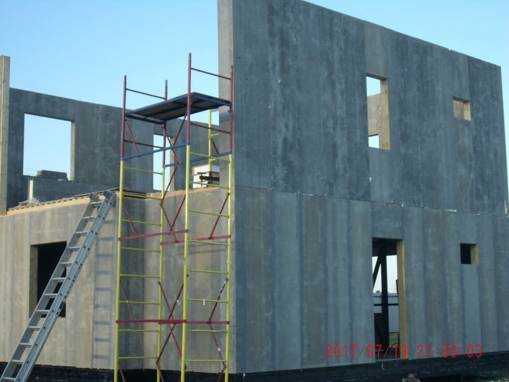Монтаж наружных стен первого этажа и каркасов несущих перегородок